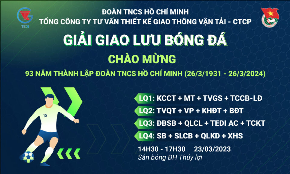 Căn cứ kế hoạch hoạt động của Đoàn Thanh niên và được sự thống nhất của Đảng ủy Tổng công ty, ngày 23/03/2024, Đoàn Thanh niên Tổng công ty Tư vấn thiết kế Giao thông vận tải – CTCP đã tổ chức Giải giao lưu Bóng đá chào mừng Kỷ niệm 93 năm ngày thành…