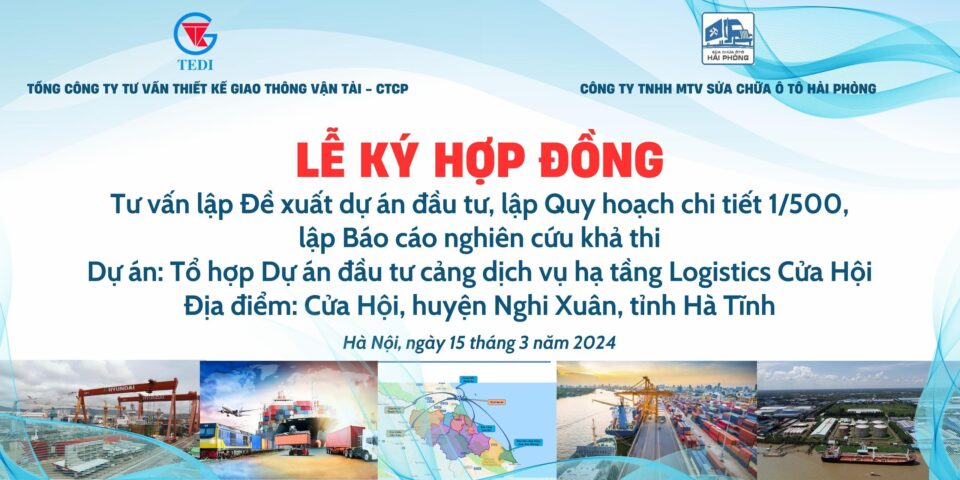 Sáng ngày 15/3/2024, tại trụ sở TEDI, Công ty TNHH MTV Sửa chữa ô tô Hải Phòng và Tổng công ty Tư vấn thiết kế Giao thông vận tải – CTCP (TEDI) đã tổ chức Lễ ký hợp đồng Tư vấn thiết kế Tổ hợp Dự án đầu tư cảng dịch vụ hạ tầng Logistics…