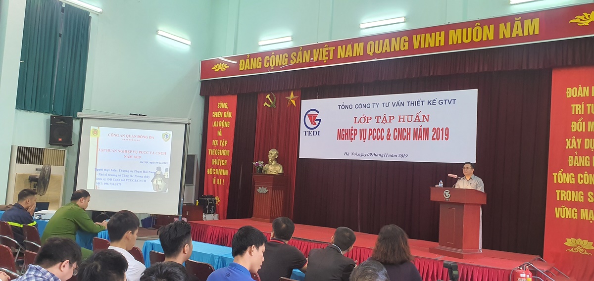 Ngày 09/11/2019 tại trụ sở chính Tổng công ty Tư vấn Thiết kế GTVT (TEDI) đã tổ chức tập huấn công tác phòng cháy chữa cháy và cứu nạn cứu hộ cho người lao động thuộc Nhóm Công ty TEDI. Đây là hoạt động thường kỳ theo Luật PCCC được Ban lãnh đạo quan tâm tổ chức cho người lao động, là dịp để người lao động cập nhật kiến thức cơ bản và thực tập các kỹ năng xử lý khi có sự cố.