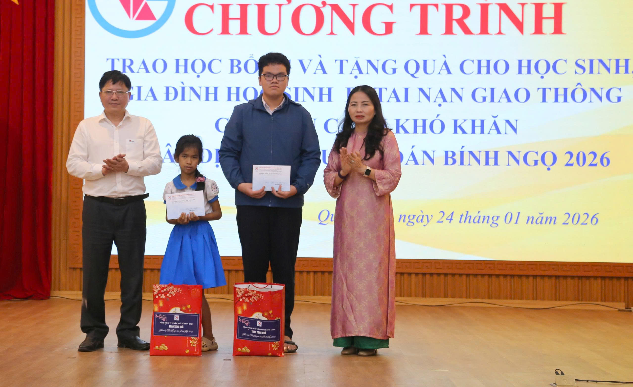 Ngày 24/01/2026, tại hội trường UBND tỉnh Quảng Trị, Tổng công ty Tư vấn Thiết kế Giao thông Vận tải – CTCP (TEDI) phối hợp với Hội Khuyến học tỉnh Quảng Trị tham gia Lễ trao học bổng và quà Tết cho học sinh bị tai nạn giao thông (TNGT) và các em có hoàn cảnh khó khăn, nhân dịp Tết Nguyên đán Bính Ngọ 2026.